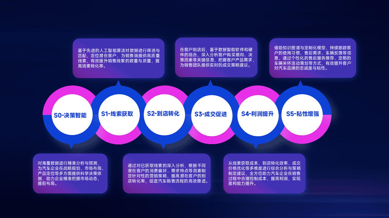 通过拓宽潜在客户来源、、、优化线索分配并提高到店转化率,,,,以增强销售效率。。同时,,,,利用线索数据不断优化分析模型,,,,有效提升转化率,,扩大营销影响力。。